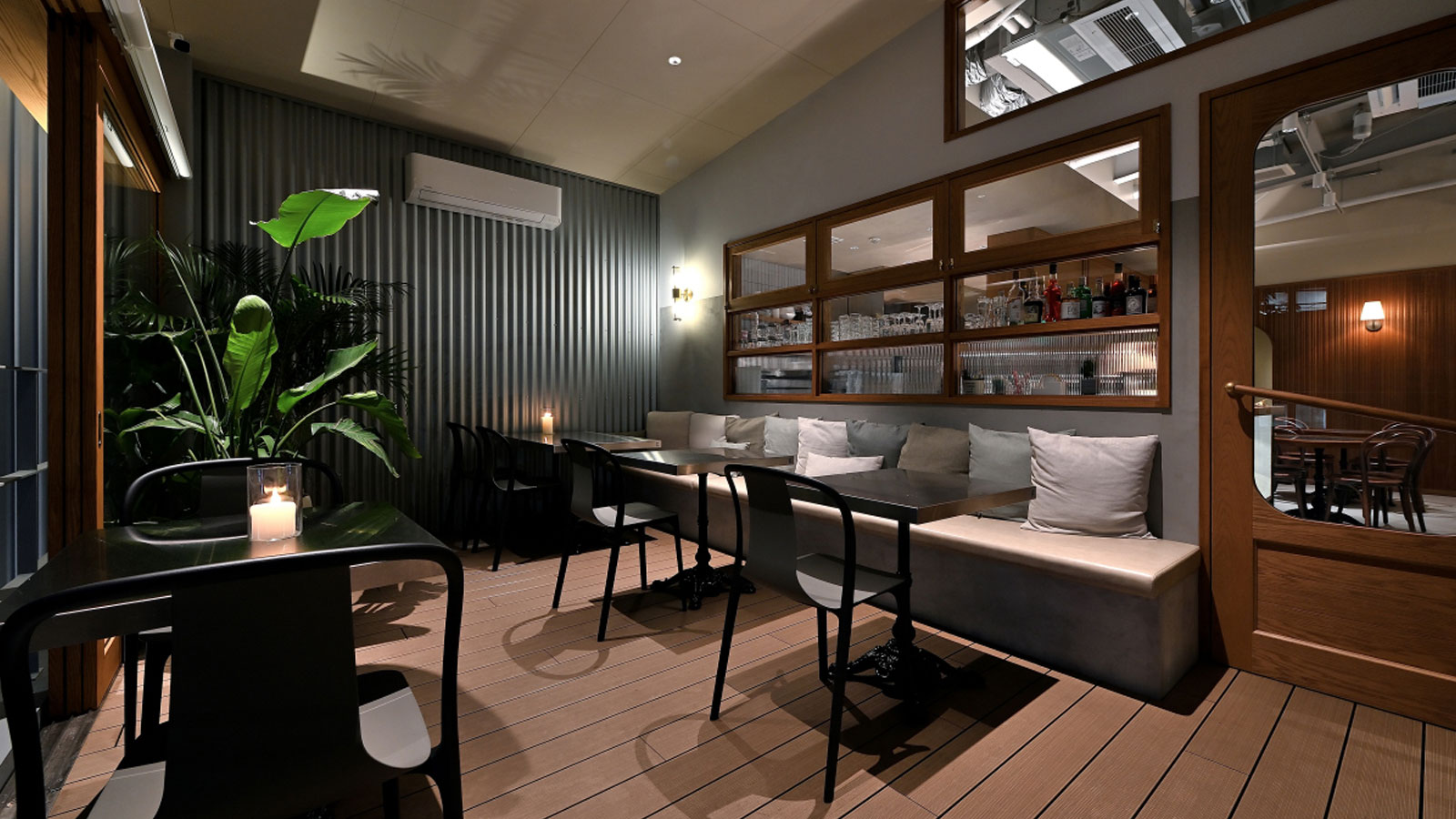 窓は可変式で、気候や時間帯に合わせて調整が可能。屋内と屋外の境界をなめらかにつなぎ、開放感あふれる空気感を演出します。利用しやすい設計にこだわっているからこそ、一年を通してムダなく快適な時間をお過ごしいただけます。