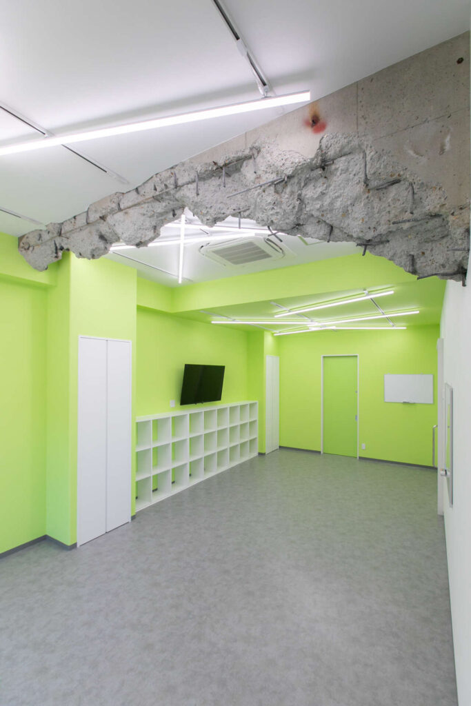 This school building, reimagined from a former bank structure, is a symbolic space transformed from a “protected place” into a “future that expands.”