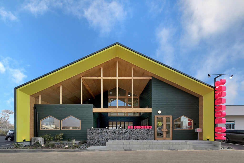 True to its name “NO BORDERS,” the open facade and the deep embrace of the roof welcome children like a large “home.”