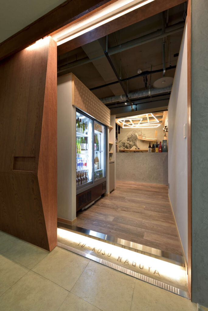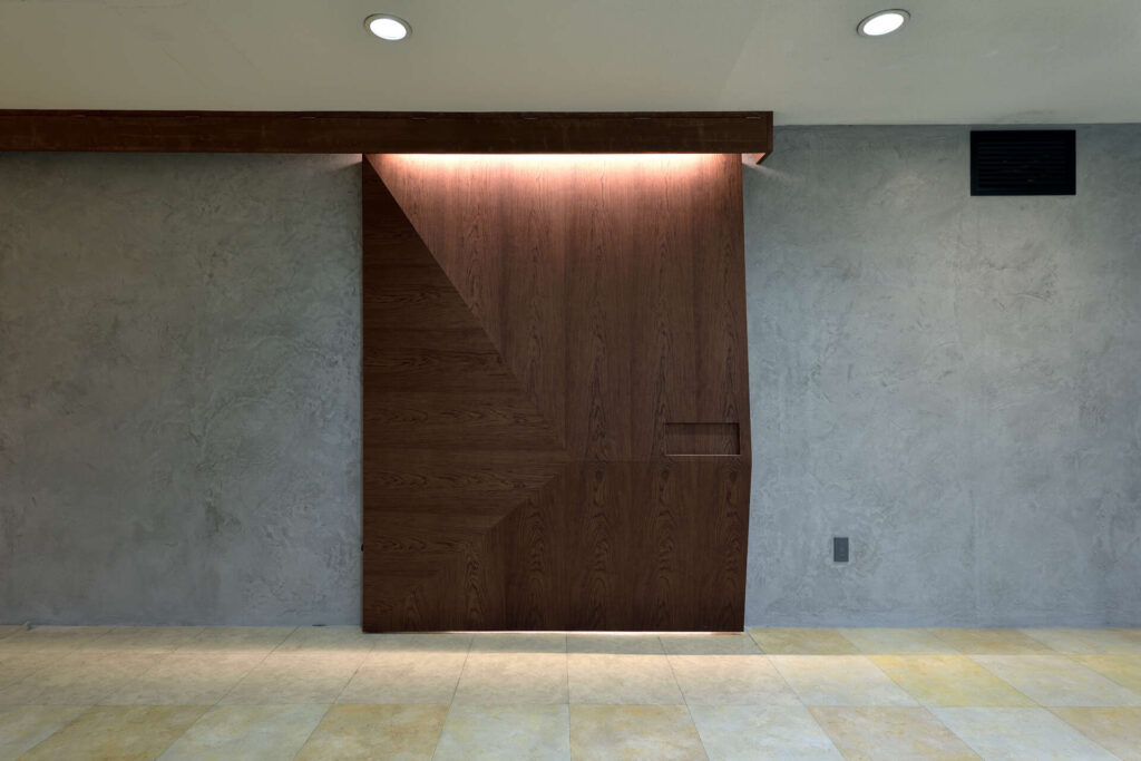 入口の大きな木の建具は、空間全体の象徴として設計し、扉を開ける瞬間から空気が変わる感覚になるように意識しました。