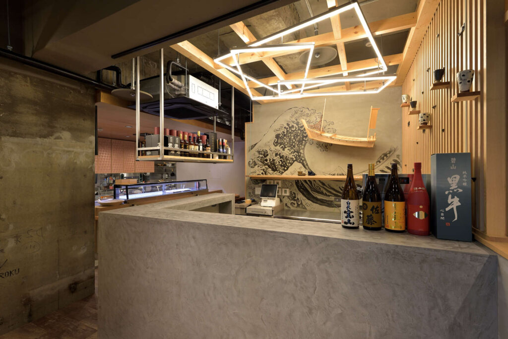 Attention to detail in the counter's curves, the wall art, and the spacing of the tatami seating areas ensures a space where guests can linger comfortably.